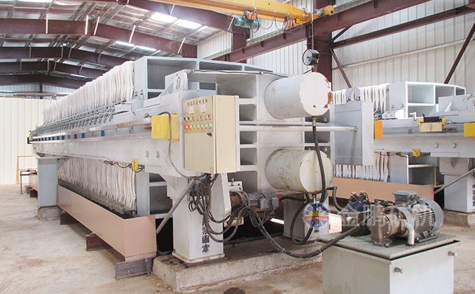 浸出槽尾礦經(jīng)緩沖槽由泵輸送到全自動廂式壓濾機(jī),壓濾后的水流入循環(huán)水池以備循環(huán)利用,濾餅經(jīng)帶運(yùn)輸機(jī)運(yùn)到尾礦堆場,卡車將尾礦運(yùn)到尾礦庫。